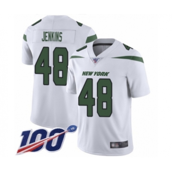 >Men's New York Jets #48 Jordan Jenkins White Vapor Untouchable Limited Player 100th Season Football Jersey