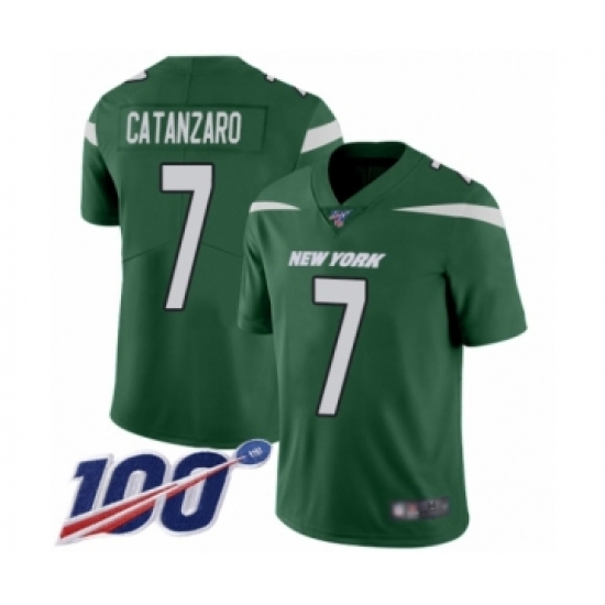 >Men's New York Jets #7 Chandler Catanzaro Green Team Color Vapor Untouchable Limited Player 100th Season Football Jersey
