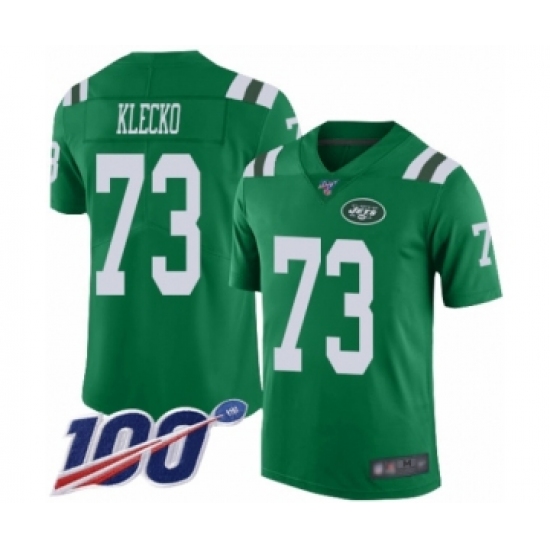 >Men's New York Jets #73 Joe Klecko Limited Green Rush Vapor Untouchable 100th Season Football Jersey