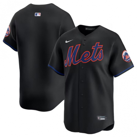 Men's New York Mets Blank 2024 Black Alternate Limited Stitched Baseball Jersey