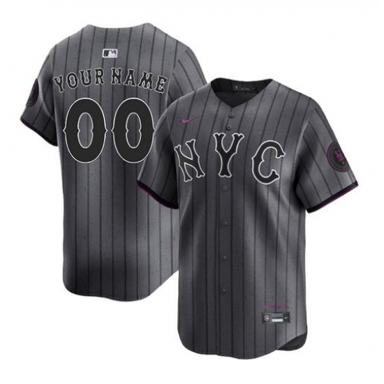 Men's New York Mets Customized Graphite 2024 City Connect Limited Stitched Baseball Jersey