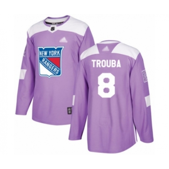 >Men's New York Rangers #8 Jacob Trouba Authentic Purple Fights Cancer Practice Hockey Jersey