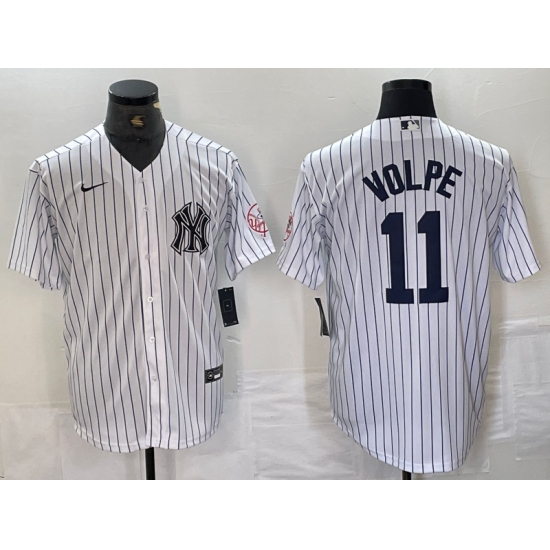 Men's New York Yankees #11 Anthony Volpe Navy Pinstripe Fashion Cool Base Jerseys