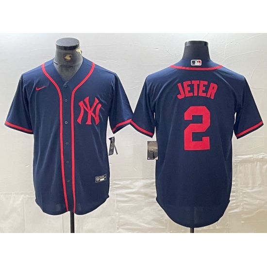 Men's New York Yankees #2 Derek Jeter Navy Red Fashion Cool Base Jersey