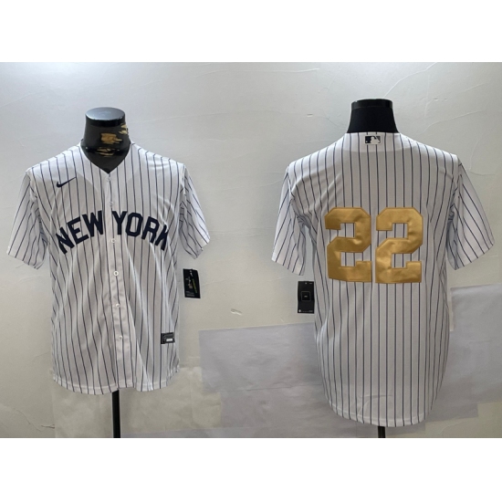 Men's New York Yankees #22 Juan Soto White Pinstripe Without Name Fashion Cool Base Jersey