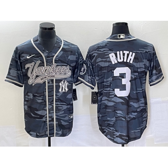 Men's New York Yankees #3 Babe Ruth Grey Camo Cool Base Stitched Baseball Jersey1
