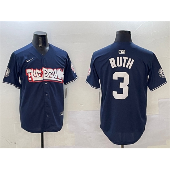 Men's New York Yankees #3 Babe Ruth Navy Bronx Graffiti Vapor Limited Stitched Baseball Jersey