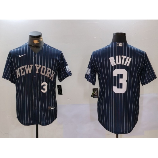 Men's New York Yankees #3 Babe Ruth Navy Blue Pinstripe Stitched MLB Cool Base Nike Jersey