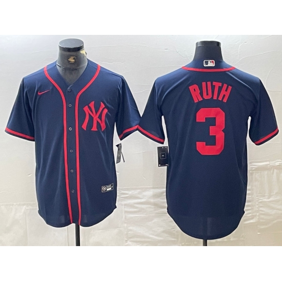 >Men's New York Yankees #3 Babe Ruth Navy Red Fashion Cool Base Jersey