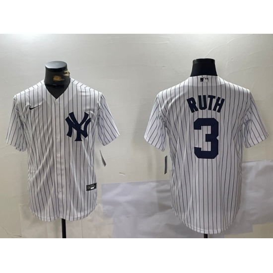 Men's Nike New York Yankees #3 Babe Ruth White Cooperstown Collection Home Stitched Baseball Jersey