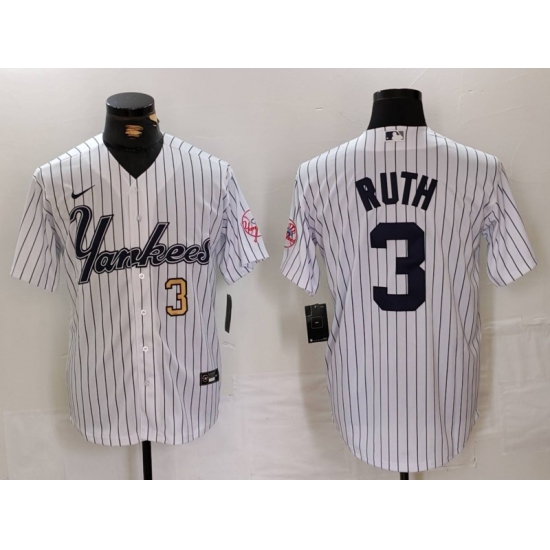Men's New York Yankees #3 Babe Ruth White Pinstripe Fashion Cool Base Jerseys