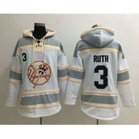 >Men's New York Yankees #3 Babe Ruth White Retired Baseball MLB Hoodie