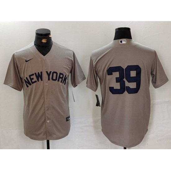 >Men's New York Yankees #39 Jose Trevino Grey Cool Base Stitched Jersey