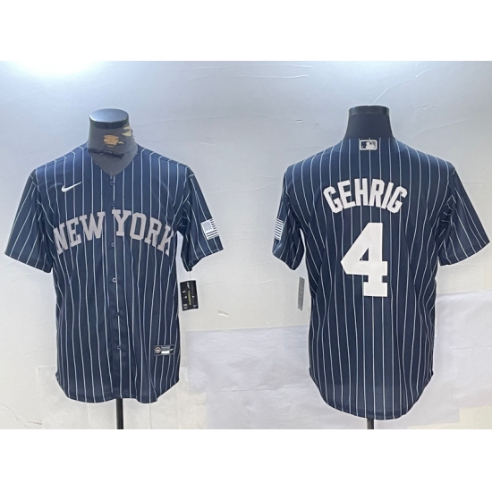 >Mens New York Yankees #4 Lou Gehrig Navy Pinstripe Fashion Cool Base Jersey