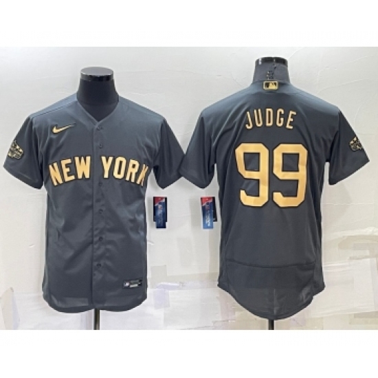 >Men's New York Yankees #99 Aaron Judge Grey 2022 All Star Stitched Flex Base Nike Jersey