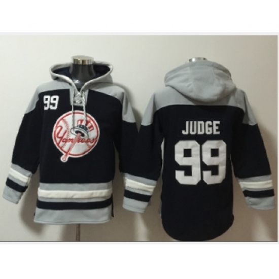 Men's New York Yankees #99 Aaron Judge Navy Blue Ageless Must Have Lace Up Pullover Hoodie