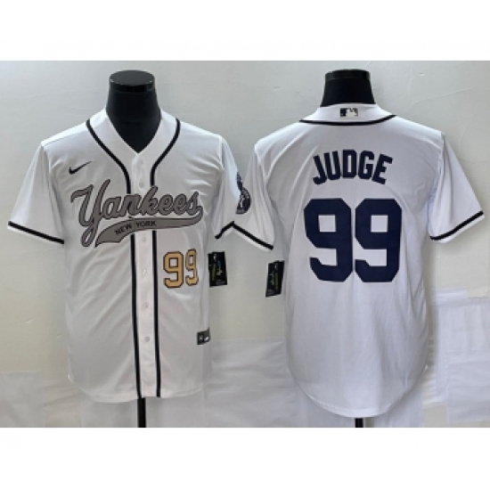 Men's New York Yankees #99 Aaron Judge Number White Cool Base Stitched Baseball Jersey