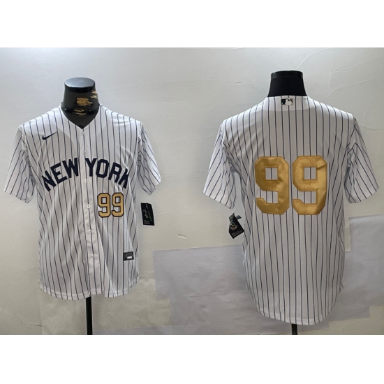Men's New York Yankees #99 Aaron Judge White Pinstripe Without Name Fashion Cool Base Jerseys