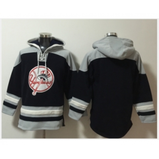 Men's New York Yankees Blank Navy Blue Ageless Must Have Lace Up Pullover Hoodie