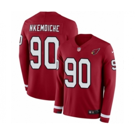 >Men's Nike Arizona Cardinals #90 Robert Nkemdiche Limited Red Therma Long Sleeve NFL Jersey