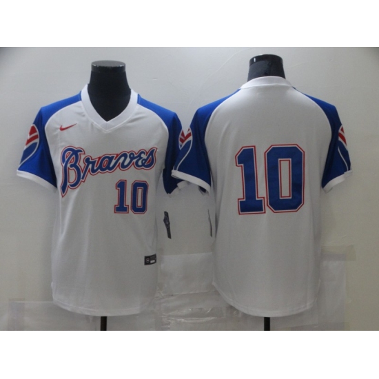 >Men's Nike Atlanta Braves #10 Atlanta Braves White Stitched Baseball Jersey