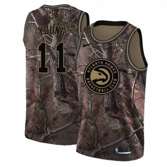 >Men's Nike Atlanta Hawks #11 Trae Young Swingman Camo Realtree Collection NBA Jersey