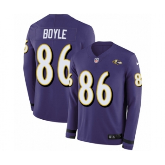 >Men's Nike Baltimore Ravens #86 Nick Boyle Limited Purple Therma Long Sleeve NFL Jersey