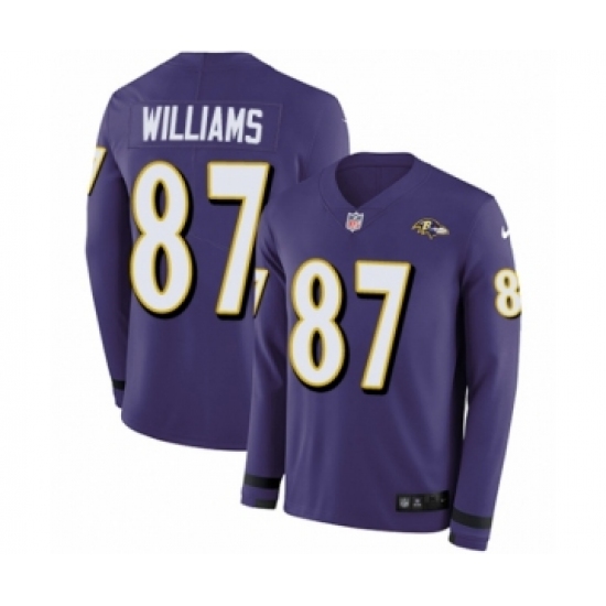 Men's Nike Baltimore Ravens #87 Maxx Williams Limited Purple Therma Long Sleeve NFL Jersey
