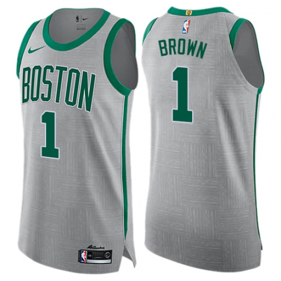 Home>NBA>Boston Celtics>Walter Brown>Men's Nike Boston Celtics #1 Walter Brown Authentic Gray NBA Jersey - City Edition