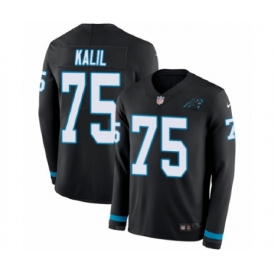 >Men's Nike Carolina Panthers #75 Matt Kalil Limited Black Therma Long Sleeve NFL Jersey