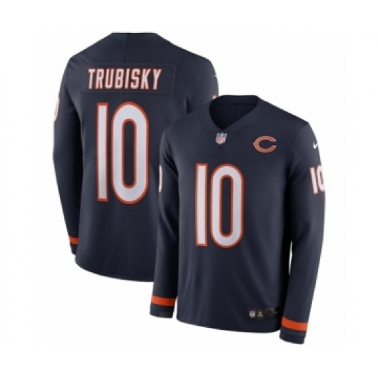 Men's Nike Chicago Bears #10 Mitchell Trubisky Limited Navy Blue Therma Long Sleeve NFL Jersey