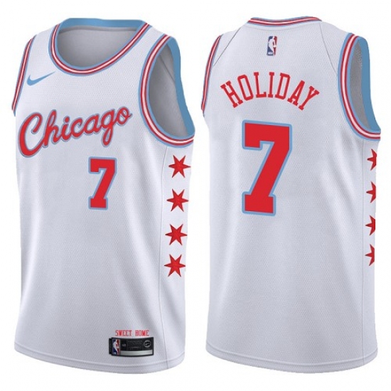 Home>NBA>Chicago Bulls>Justin Holiday>Men's Nike Chicago Bulls #7 Justin Holiday Authentic White NBA Jersey - City Edition