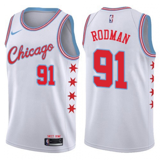Men's Nike Chicago Bulls #91 Dennis Rodman Swingman White NBA Jersey - City Edition