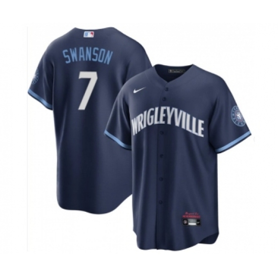 >Men's Nike Chicago Cubs #7 Dansby Swanson Navy City Connect Cool Base Stitched Baseball Jersey