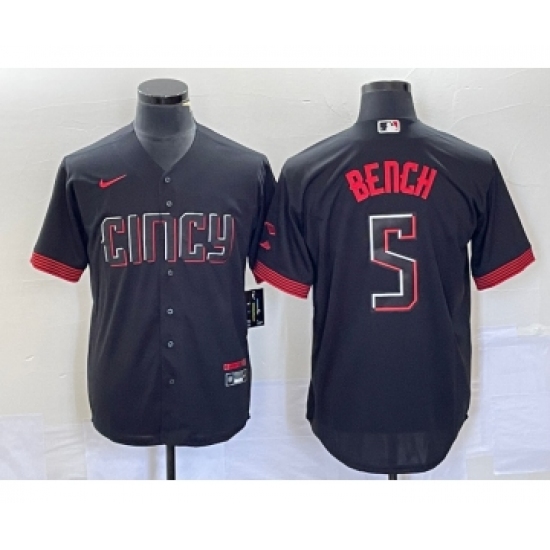 Men's Nike Cincinnati Reds #5 Johnny Bench Black 2023 City Connect Cool Base Stitched Baseball Jersey1