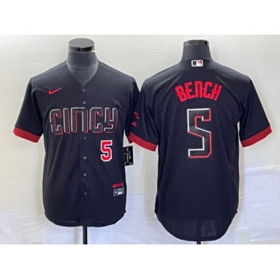 Men's Nike Cincinnati Reds #5 Johnny Bench Black 2023 City Connect Cool Base Stitched Baseball Jersey