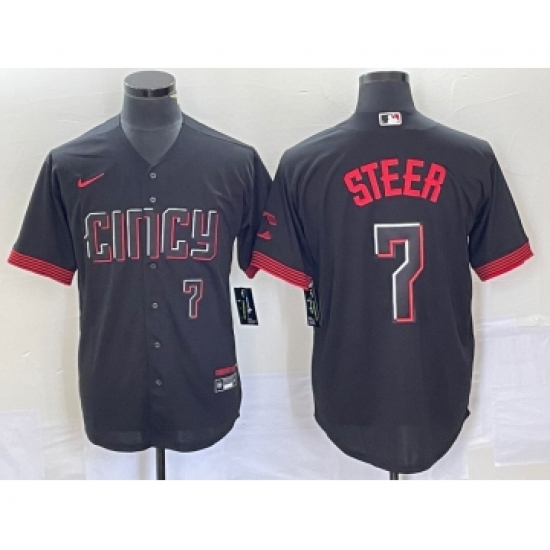 Men's Nike Cincinnati Reds #7 Spencer Steer Black 2023 City Connect Cool Base Stitched Baseball Jersey