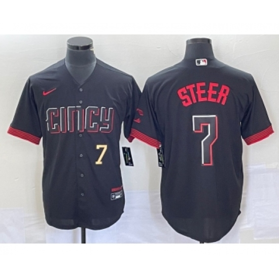 Men's Nike Cincinnati Reds #7 Spencer Steer Numer Black 2023 City Connect Cool Base Stitched Baseball Jersey