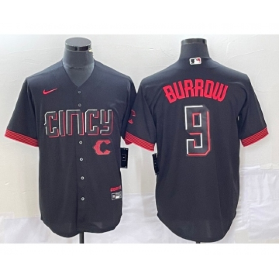 Men's Nike Cincinnati Reds #9 Joe Burrow Black 2023 City Connect Cool Base Stitched Baseball Jersey