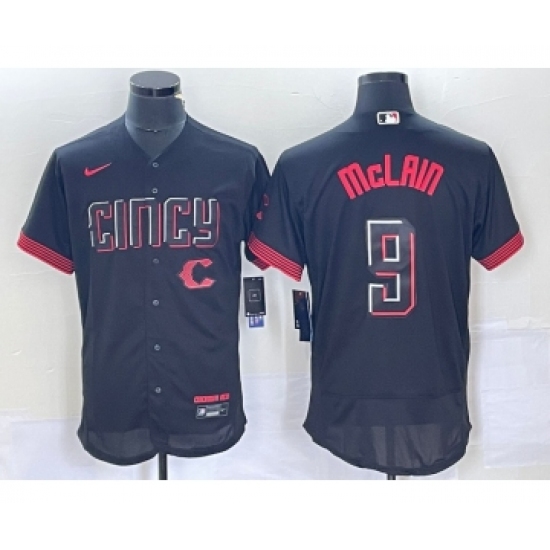 >Men's Nike Cincinnati Reds #9 Matt McLain Black 2023 City Connect Flex Base Stitched Jersey1