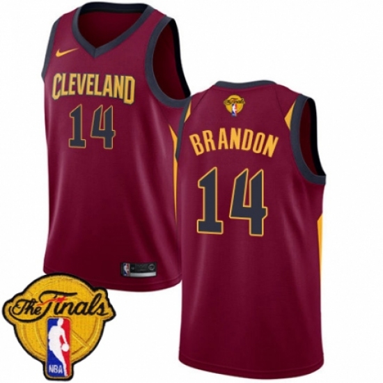 >Men's Nike Cleveland Cavaliers #14 Terrell Brandon Swingman Maroon 2018 NBA Finals Bound NBA Jersey - Icon Edition