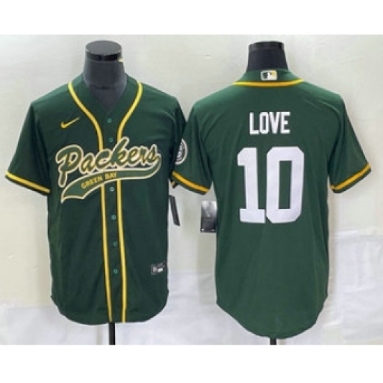 Men's Nike Green Bay Packers #10 Jordan Love Green Cool Base Stitched Baseball Jersey