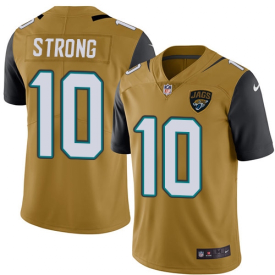 Home>NFL>Jacksonville Jaguars>Jaelen Strong>Men's Nike Jacksonville Jaguars #10 Jaelen Strong Limited Gold Rush Vapor Untouchable NFL Jersey
