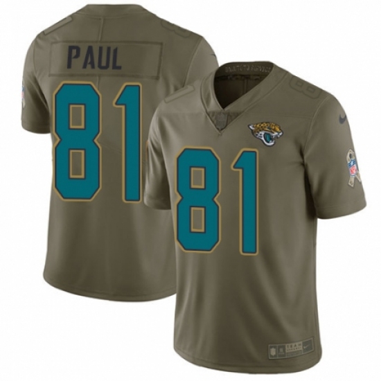 >Men's Nike Jacksonville Jaguars #81 Niles Paul Limited Olive 2017 Salute to Service NFL Jersey