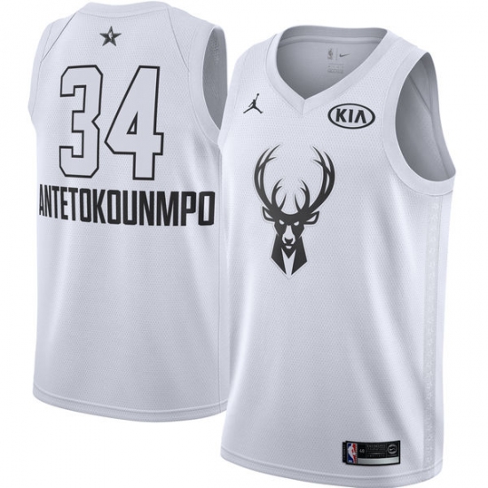 Home>NBA>Milwaukee Bucks>Giannis Antetokounmpo>Men's Nike Jordan Milwaukee Bucks #34 Giannis Antetokounmpo Swingman White 2018 All-Star Game NBA Jersey
