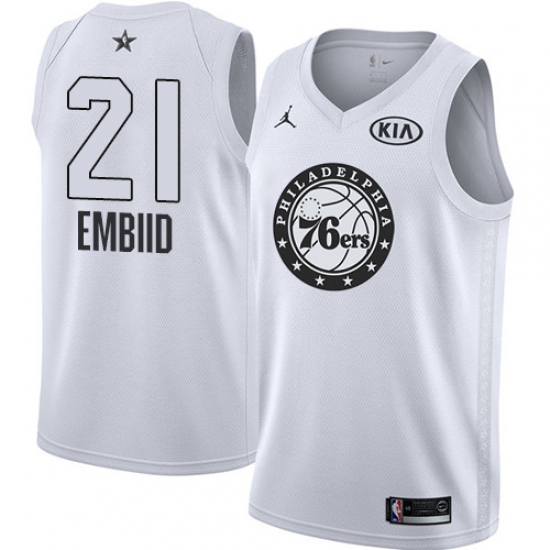 Home>NBA>Philadelphia 76ers>Joel Embiid>Men's Nike Jordan Philadelphia 76ers #21 Joel Embiid Swingman White 2018 All-Star Game NBA Jersey