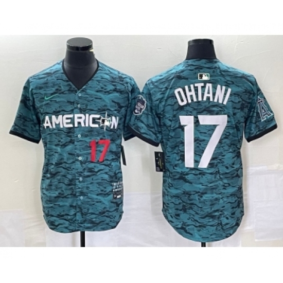 >Men's Nike Los Angeles Angels #17 Shohei Ohtani Number Teal 2023 All Star Cool Base Stitched Jersey1