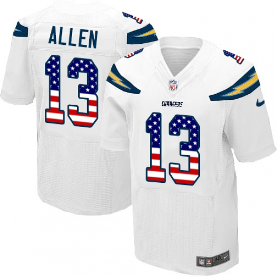 Men's Nike Los Angeles Chargers #13 Keenan Allen Elite White Road USA Flag Fashion NFL Jersey