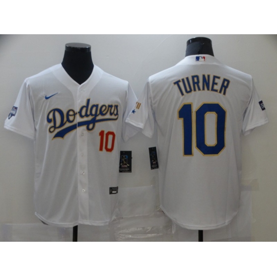 Men's Los Angeles Dodgers #10 Justin Turner White Cool Base Stitched Baseball Jersey1