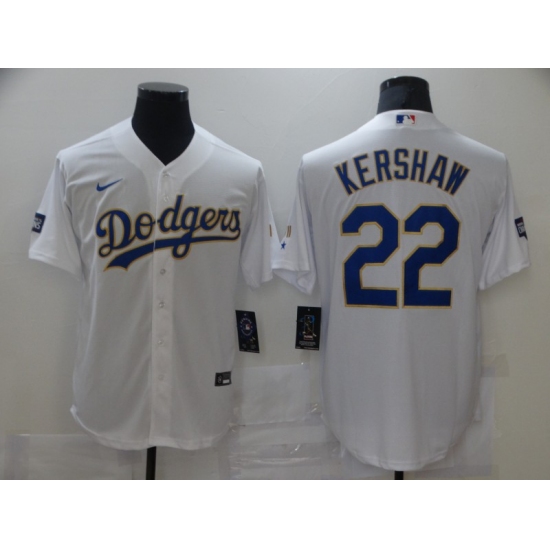 Men's Los Angeles Dodgers #22 Clayton Kershaw White Cool Base Stitched Baseball Jersey1
